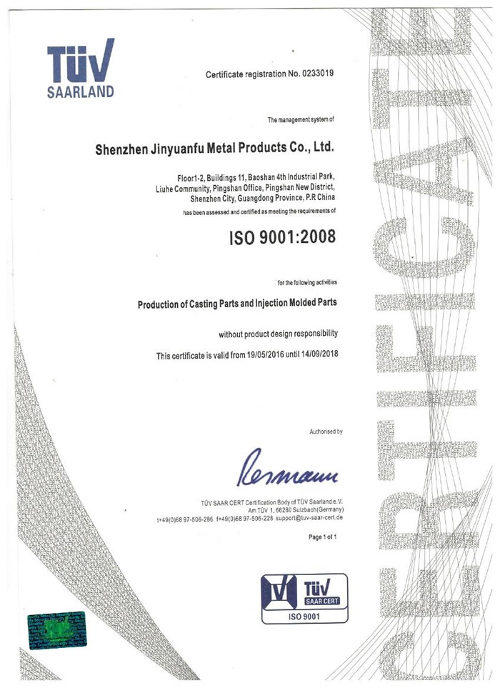 深圳市金源福五金制品有限公司成立于2003年。公司擁有8000多平方米生產(chǎn)廠地、開(kāi)發(fā)與管理精英人才、技術(shù)專(zhuān)業(yè)、設(shè)備精良、交通便利、服務(wù)周全、具體設(shè)計(jì)、開(kāi)發(fā)、制模、出樣、生產(chǎn)到成品出貨一體化模式生產(chǎn)廠家。已通過(guò)ISO9001:2008ISO1440/TS16949:2009國(guó)際質(zhì)量體系認(rèn)證。專(zhuān)業(yè)生產(chǎn)鋅合金壓鑄、鋁合金壓鑄產(chǎn)品、汽車(chē)配件、汽車(chē)后視鏡支架、車(chē)載導(dǎo)航散熱器、LED散熱器、LED燈罩、數(shù)碼電子五金結(jié)構(gòu)件、家具五金裝飾件、標(biāo)牌(LOGO)等五金壓鑄產(chǎn)品。